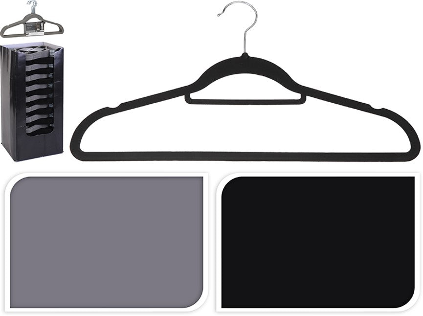 Fløyelsbelagte kleshengere, tynne - 0,4 cm. 10pk. Tilgjengelig i sort og grå.