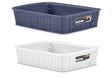 Kurv i plast. 19,5 x 25 x 6 cm. Tilgjengelig i blå og hvit.