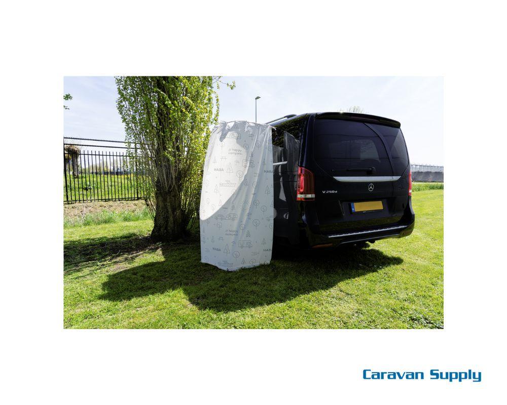 Med de robuste sugekoppene er det mulig å feste den på siden av campingvognen eller bobilen.