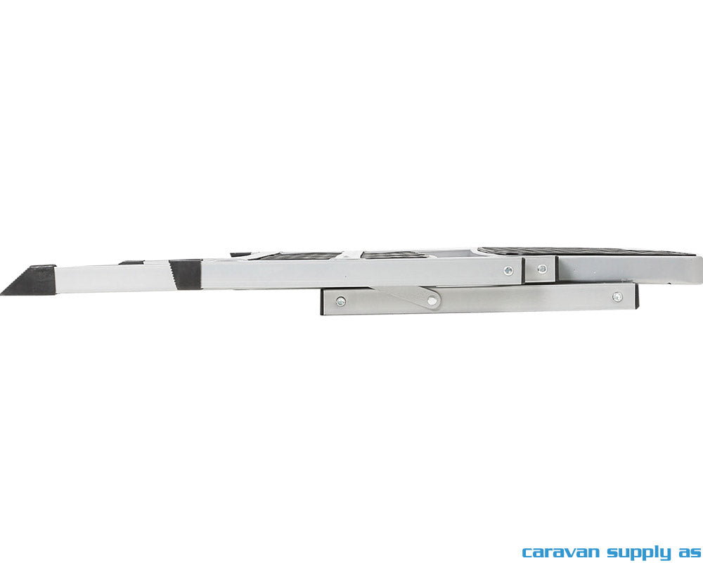 Kompakt sammenleggbart dobbelt foldetrinn med aluminiumsramme og antiskli overflate.