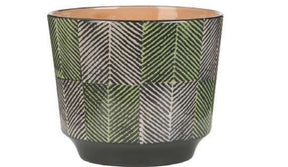 Blomsterpotte i Tweed mønster, perfekt å drikke te ved siden av. Omkrets på 14cm høyde på 11,6cm.
