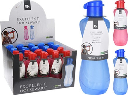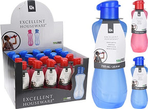 Myk drikkeflaske, 750 ml. Fri for BPA. Tilgjengelig i 2 forskjellige farger: Blå og rød.