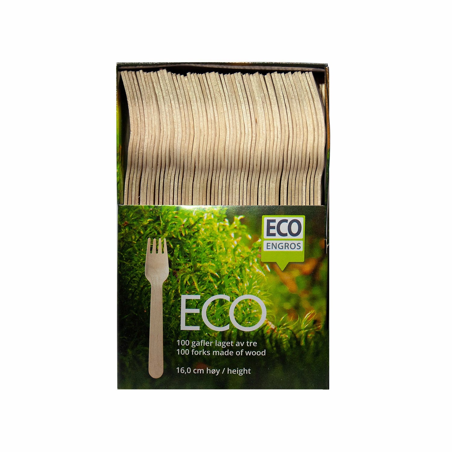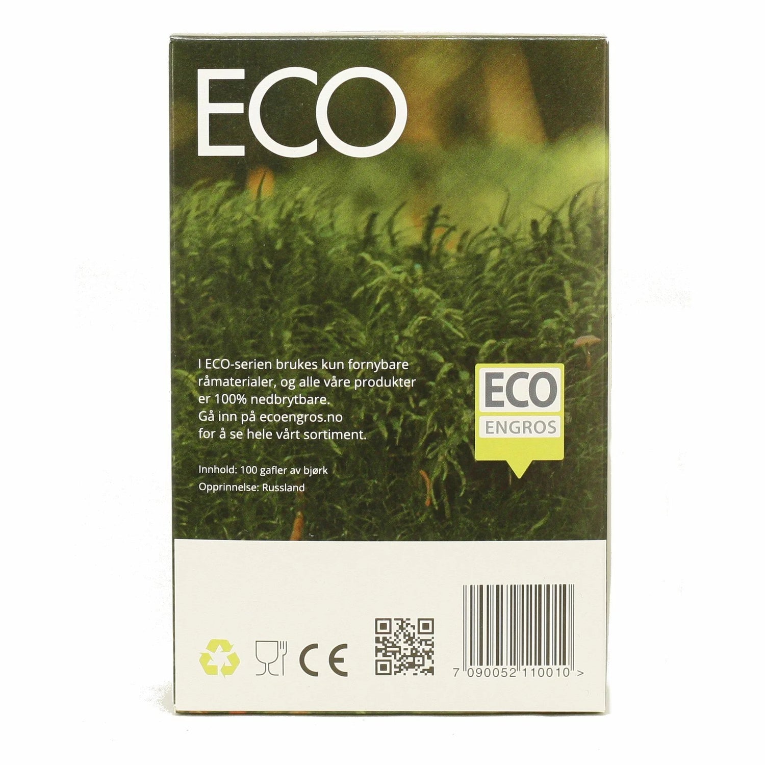 Trebestikk i tre (bjørk). Trebestikk er en 100% fornybar råvare. Hver pakke inneholder 100 miljøvennlige tregafler. Trebestikk fra Eco Engros egner seg godt til restauranten, kafeen, når du er på tur eller hvorfor ikke til festen. Engangsgafler i tre blir produsert ved å kutte i ønsket form for så å polere overflaten så du unngår flis.