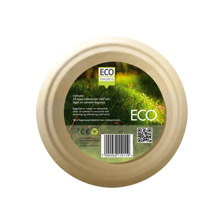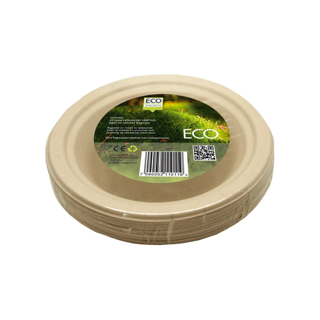 Tallerken ubleket bagasse 22,9cm 3rom 25pk