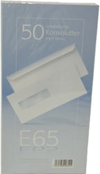 E65 konvolutter med vindu. 50pk.