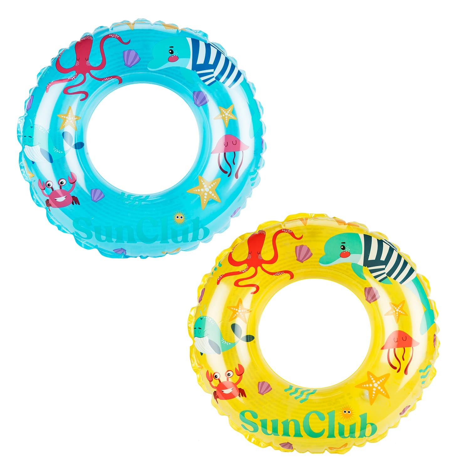 Fin og enkel svømmering til barn. 50cm, i blå eller gul.