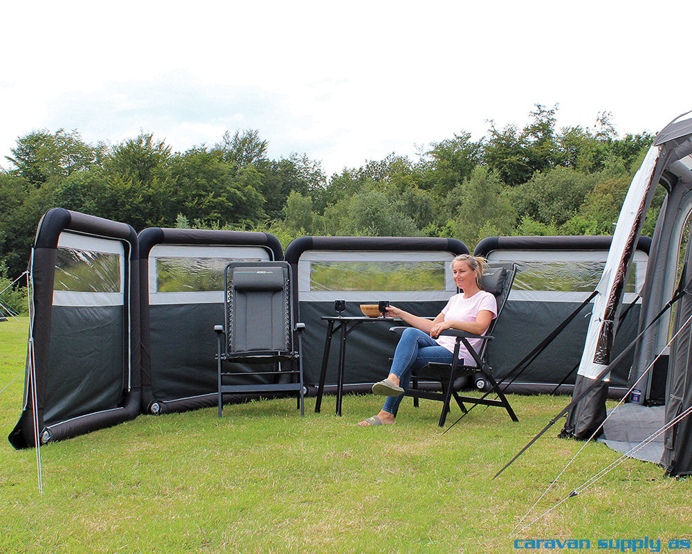 Oxygen Windbreak er en premium oppblåsbar levegg med tre paneler i moderne design. Hvert panel blåses opp enkeltvis på meget kort tid, og panelene er fleksible slik at du enkelt kan plassere leveggen slik du selv ønsker. Leveggen beskytter mot sol, vind og den gir deg privatliv.