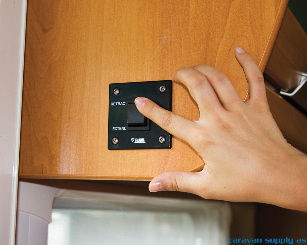 Motor Kit 12V kan monteres på markisen i etterkant og da rulles markisen inn og ut kun ved å trykke på en knapp. Selv om motoren er montert kan man fremdeles håndtere markisen manuelt med sveiven hvis man ønsker det. Med motoren montert blir markisen kun 13cm lenger. Motor Kit til F65L leveres standard for montering på venstre side.