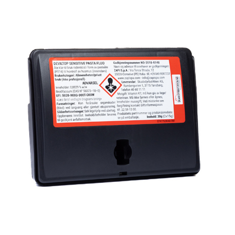 Musegift med sporings pasta - Deviltop sensitive fluo - 2x15 g