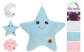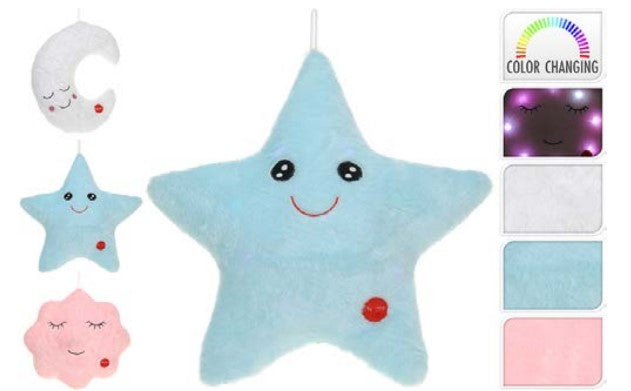 Pute i plysj med LED lys. 34-40 cm. Tilgjengelig i 9 forskjellige farger/motiver.