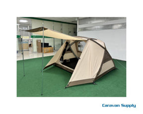 Det er mange ventilasjonsmuligheter i dette lille teltet, det er myggnetting i dør, tak og sidestykke. Det er også 2 stenger for å holde døren oppe som en liten markise.