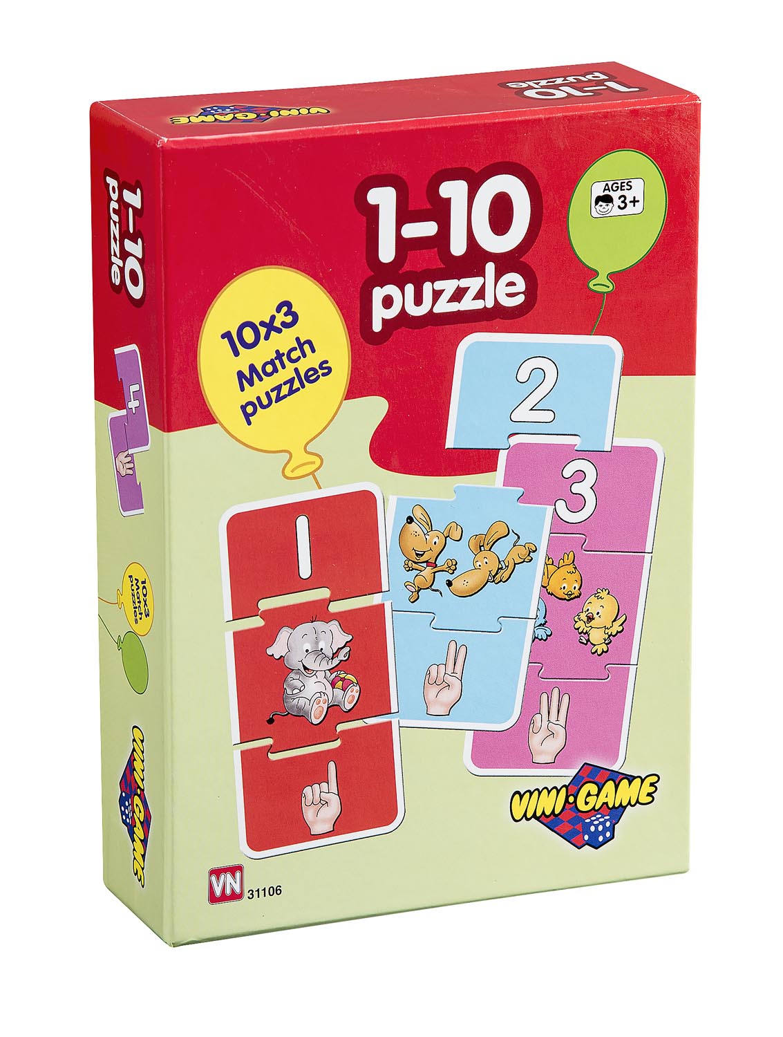Lær å telle puslespill Med 10x3 brikker. Lær å telle fra 1-10 på en morsom måte.