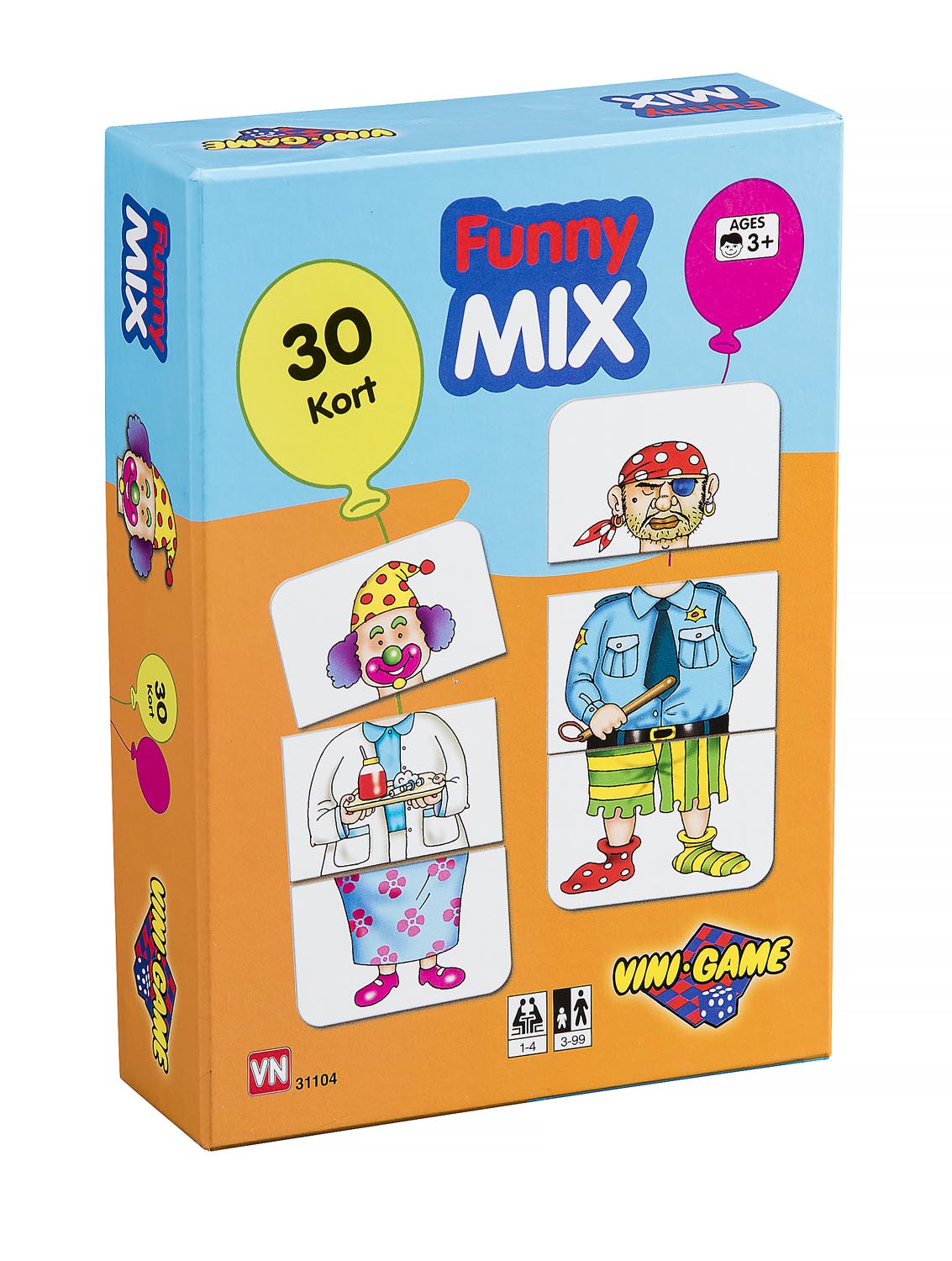 Funny mix pusle-/kortspill. Bland kortene og lag dine egne figurer eller spill forskjellige spill. Inkl. spilleregler.