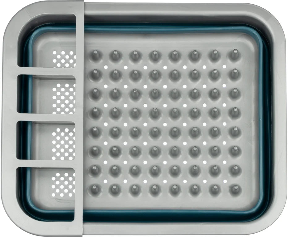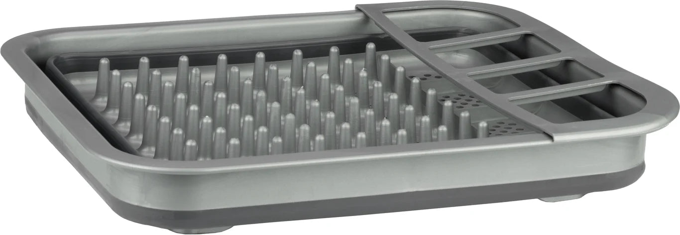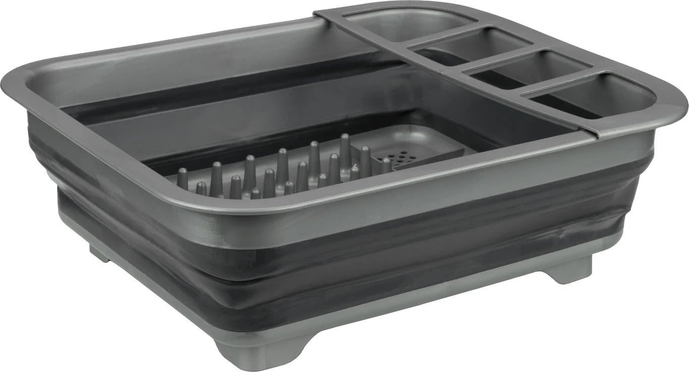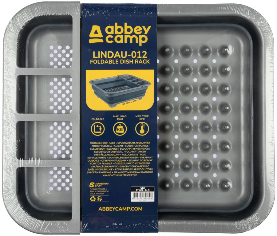 Dessverre må oppvasken gjøres etter hvert måltid. Med dette sammenleggbare tørkestativet til Abbey Camp kan du la oppvasken og bestikket renne av seg til du tørker det med en oppvaskhåndkle eller bare la dem tørke helt. Vannet renner gjennom hullene i bunnplaten. Foldesystemet gjør at du enkelt kan transportere eller lagre dette stativet.
