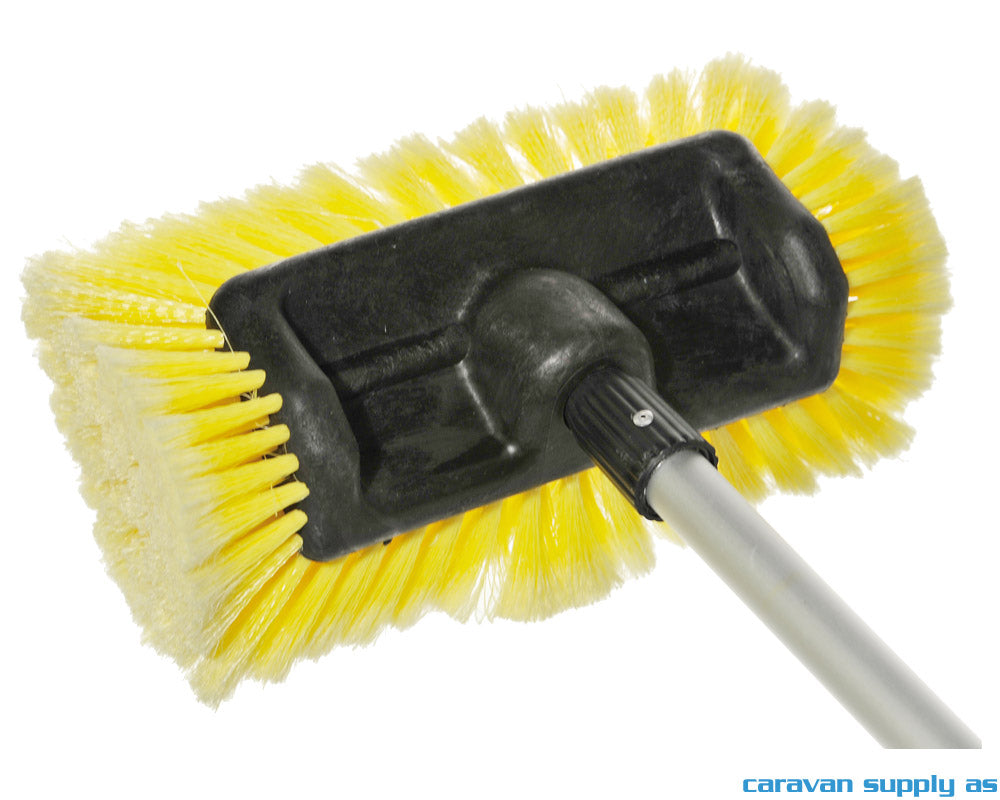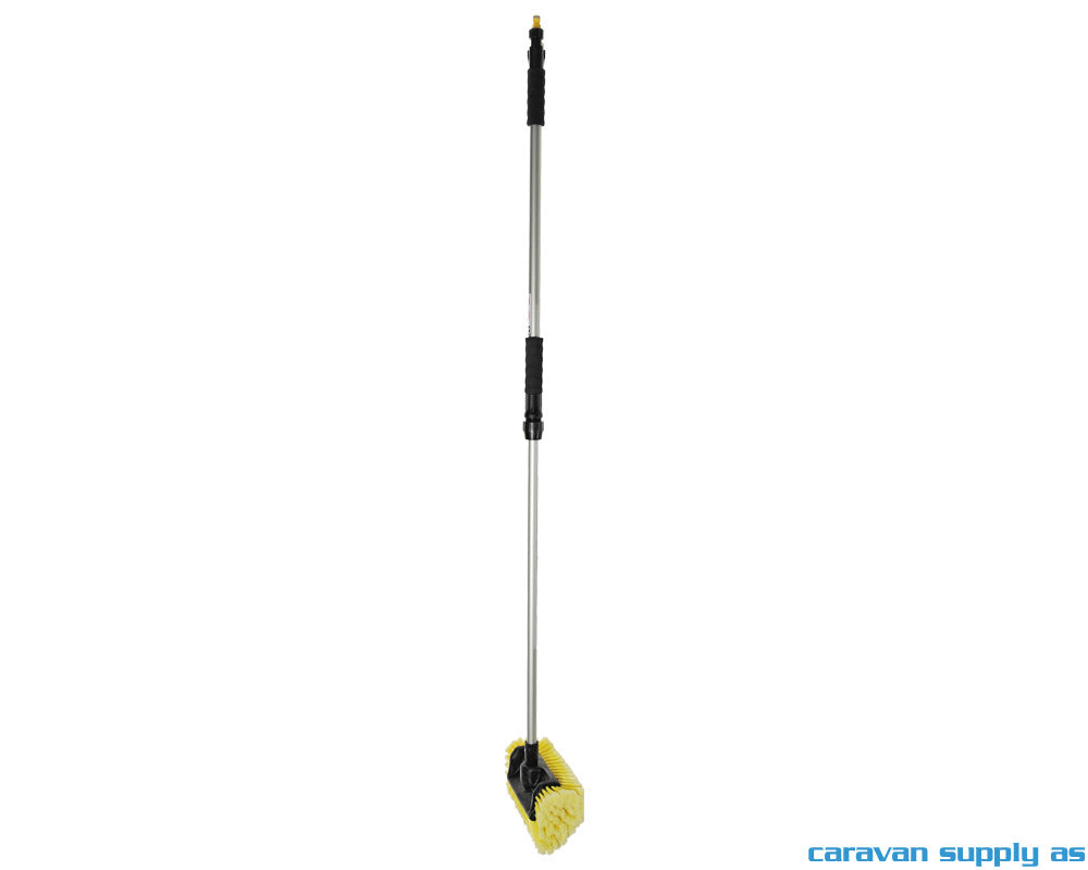 Vaskekost med teleskopisk aluminiumsstang med vanngjennomstrømning. Teleskopskaftet kan utvides fra 90-175cm. Med gardenakobling og mykt, polstret håndtak. Stort og bløtt børstehode med sidebust.