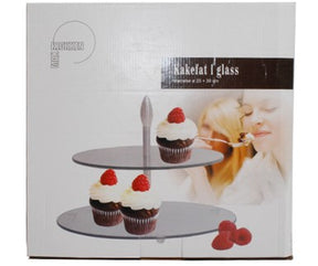 Kakefat i glass med to etasjer.