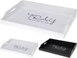 Serveringsbrett i tre. 45 x 30 x 6 cm. Tilgjengelig i 2 forskjellige farger: Hvit og sort.