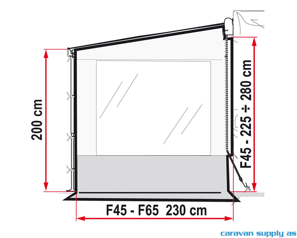 NB! Denne sideveggen passer standard til Fiamma F45S/F45L markiser med dybde 250cm.