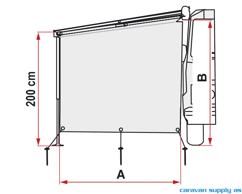 NB! Denne sideveggen passer standard til Fiamma F45S/F45L markiser med dybde 250cm.