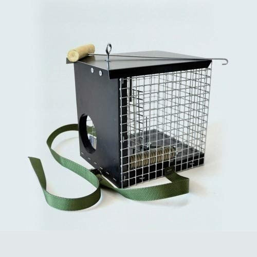 Syningfella - felle mot mink og mår. Fellen er laget av polyetylen i bunn og inngangsparti. Åtekammeret og utløseren er laget i galvanisert netting. En utrolig slagstyrke.