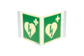 Et markeringsskilt for hjertestarter. Settes opp på samme vegg hvor man har hjertestarteren.