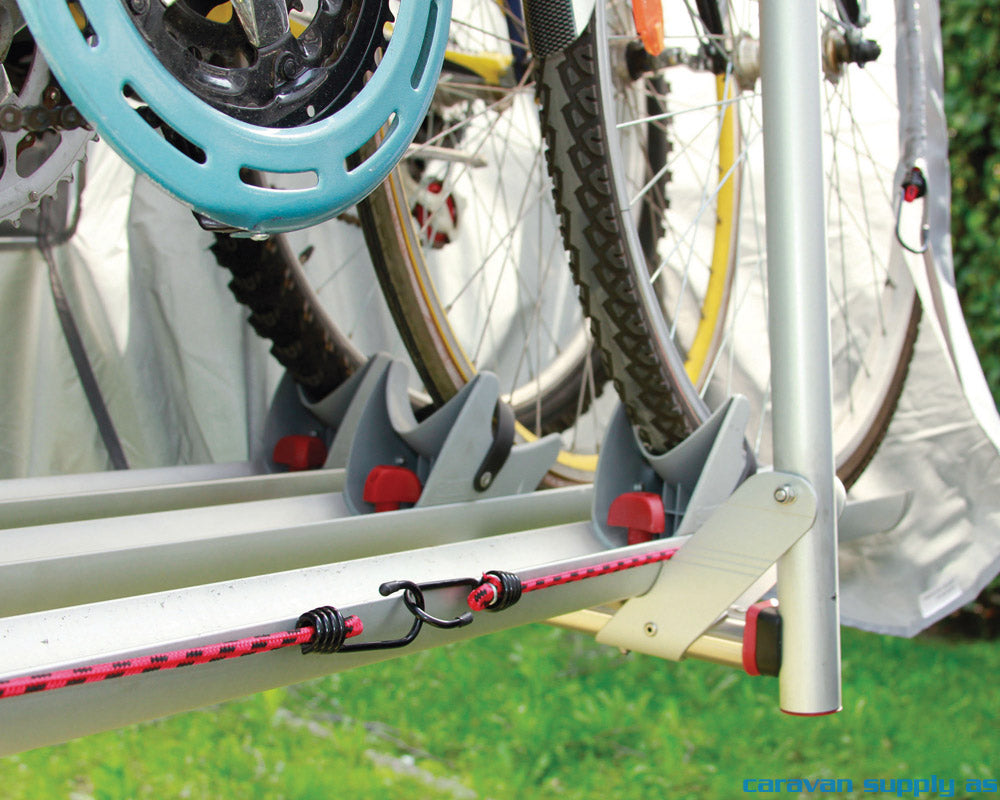Til 2 eller 3 sykler montert på bobilen. Trekket lukkes med justerbare reimer med kroker, og har en transparent lomme med plass til varselskilt. Laget av vanntett, forsterket polyester.