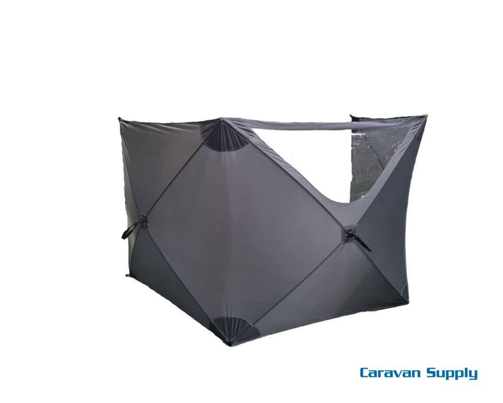 Pop stop levegg er en kompakt levegg som kan åpnes og pakkes bort på få minutter. Leveggen kommer i en bæreveske med knagger, stangdunasje og stormstropper. Leveggen har 3 seksjoner, alle med vinduer.