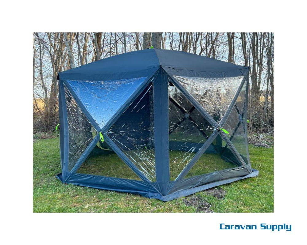Pop Stop 350Z kan stå fritt eller monteres på autocamper, camper-van eller campingvogn, ved tilkjøp av tunnel. Pop stop teltet med 2 x myggnettpaneler, 2x vinduspaneler, dør med vindu og dør i front med myggnett. Det følger med gardiner til vinduene.