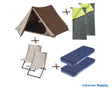 Et luksuriøst og trendy campingsett for alle som liker å gå på festivaler eller som bare vil på camping for en helg. Selvfølgelig er dette settet ideelt som sidetelt. Både egen luftmadrass, sovepose og stol følger med i dette settet.