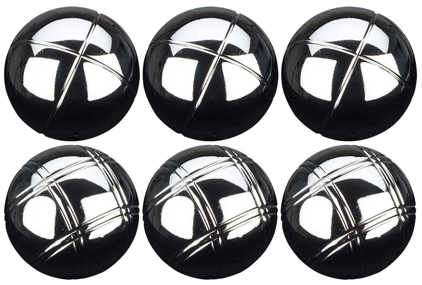 Bocciaballer i krom-stål. Ballene er markert i 2 mønster som lar spillerne kjenne igjen sine kuler. Her får du alt du trenger til en skikkelig Boccia-turnering.