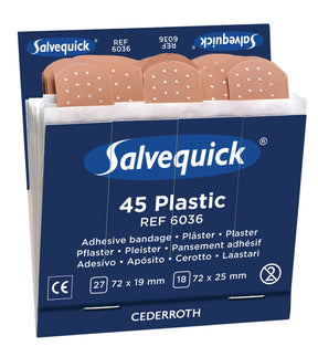 Salvequick plasteret fra Snøgg er et kvalitets plaster. Produktet er allergitestet, svært enkelt å bruke og slitesterkt. Plasteret kommer i en praktisk forpakning på 45 stykk.
