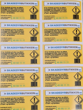Klistremerker til varsel om felle utsettelser. 10 stk. Viktig med varsel i forhold til sikkerhet. Klistremerkene er i meget god kvalitet som holder i mange år.