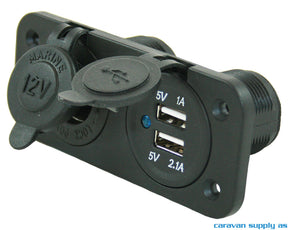 12V STIKKONTAKT + 2 X USB LADER 1A+2,1A INNBYGGING
