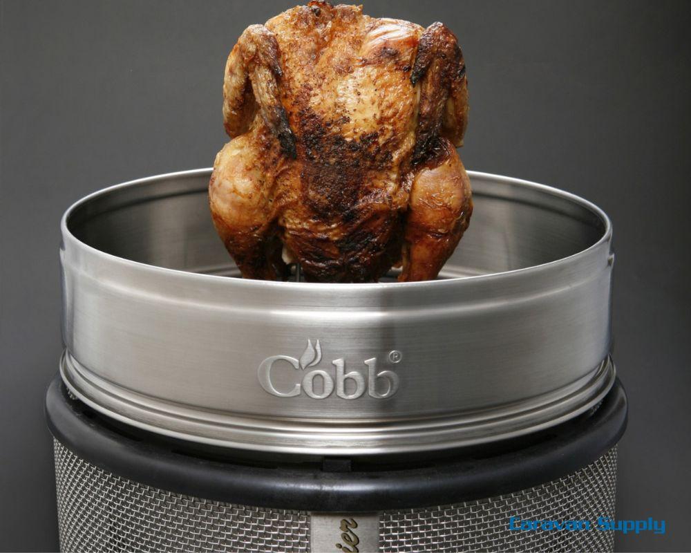 Lokkforhøyer – leveres med kylling-holder, slik at du kan grille en stor kylling på høykant. Kan også brukes for å skape mer rom inni grillen når du ønsker å grille større kjøttstykker.
