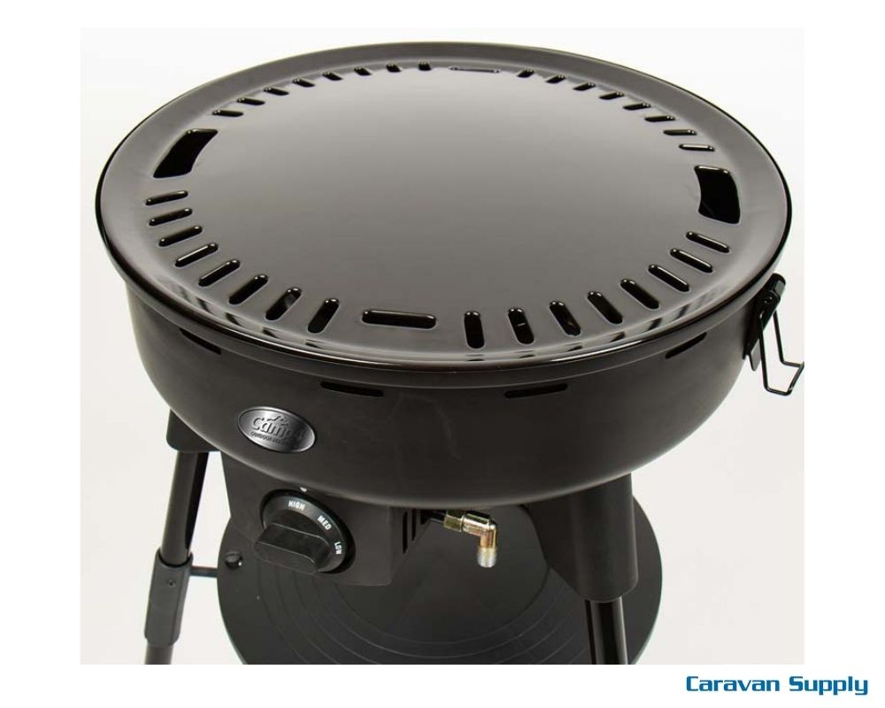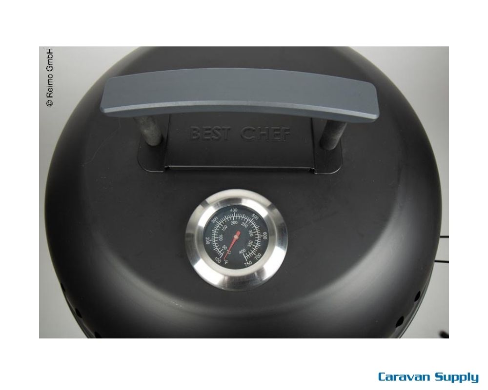 Gassgrill med tre høydejusterbare metallben og plastføtter. Komfortabel arbeidshøyde 67/98cm. Kan også brukes som bordgrill uten metallben. Grillen har gassflasketilkobling for butan, propan eller LPG gassblandinger. Temperaturvisning i lokket og tenningssikring.