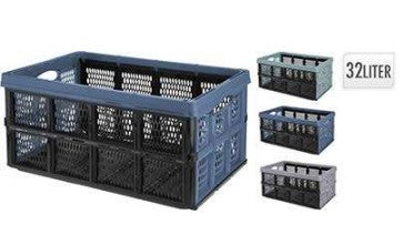Sammenleggbar kasse / kurv med volum på 32 liter. Kommer i 3 skjønne farger.