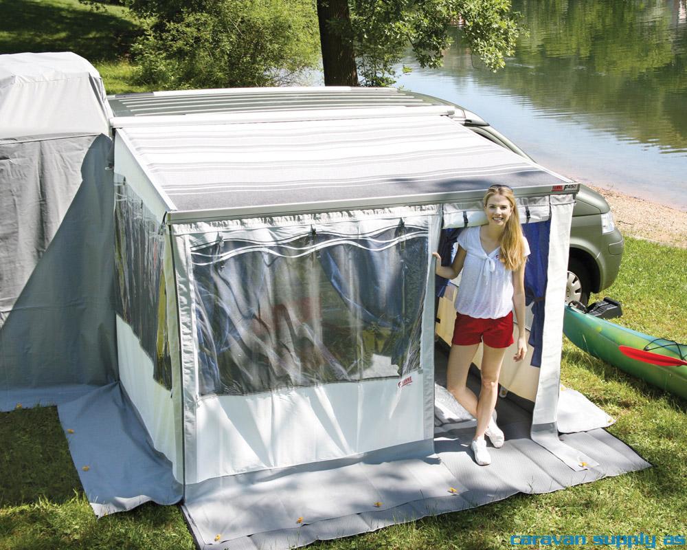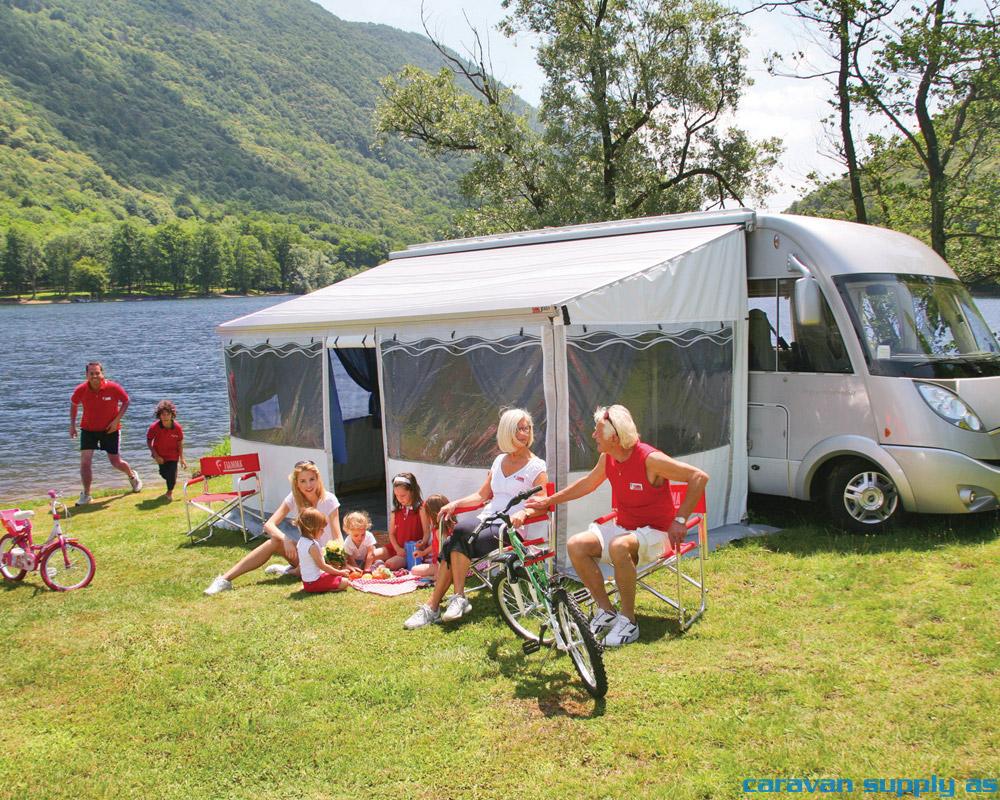 Privacy Room er komplett front- og sidevegger til markisene fra Fiamma i serien F45S og F45L. Med de patenterte Fast Clip festes sideveggene enkelt til markisen. Skumgummi festes vertikalt mellom sideveggen og kjøretøyet for å få det tett. Frontveggen monteres i sporet på markisen og festes til sideveggene med glidelås. Døren kan monteres på venstre eller høyre side. På kort tid kan du få dobbelt så stort oppholdsrom! Vinduene kan rulles opp og leveres med myggnett. Det følger med en praktisk bag hvor veggene oppbevares når de ikke er i bruk. Veggene er laget av vinyl som er vanntett, blekes ikke av solen og er lett å holde rene.