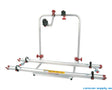 Passer til montering i garasjen i bobilen. Sykkelstativet monteres i gulvet. Kan slås sammen, så tar liten plass når den ikke er i bruk. Laget av anodisert aluminium og skruene er av rustfritt stål. Følger med fester.