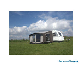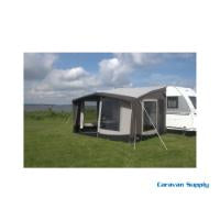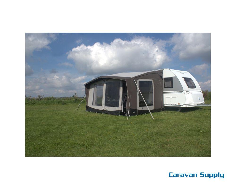 En kalesje beskytter fronten av forteltet med ekstra ventilasjon på toppen.