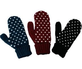 Strikket vott med prikker. Tilgjengelig i blå, rød og sort.