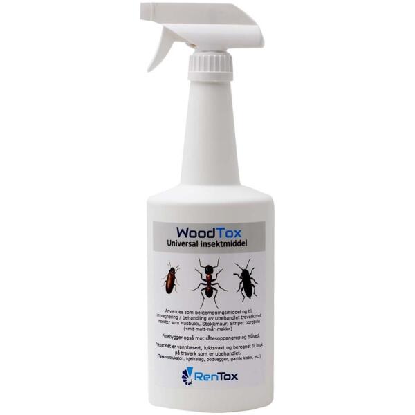 WoodTox universal insektsmiddel. Brukes til bekjempelse og forebyggende behandling mot insekter som angriper treverk. Forebygger også mot angrep av blåved og råtesopper.